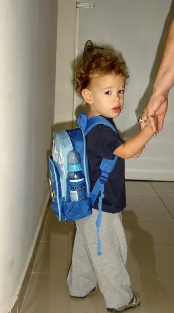אח שלי ביום הראשון בדרך לגנון (נותן יד לסבתא שלי)