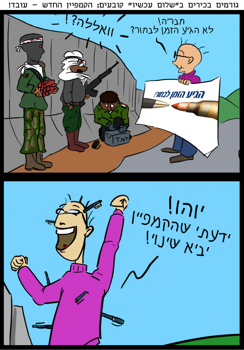 צוייר לאחר הכרזת חלק מרבני גוש קטיף כי לא יאמרו השנה הלל (ב 2005)