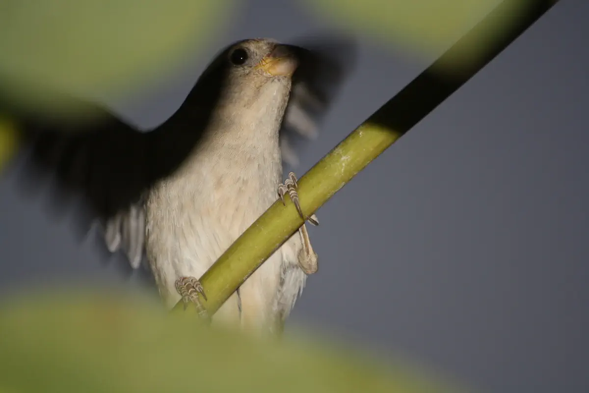צולם עם לפאש (ישיר), הפלאש זה בעצם 2 פלאשים: פלאש ראשון כדי לדעת כמה אור צריך ואח"כ הפלאש "האמיתי", שמתי לב שהדרורים מגיבים כ"כ מהר לפלאש הראשון עד שבשני (=התמונה) הם כבר קופצים...