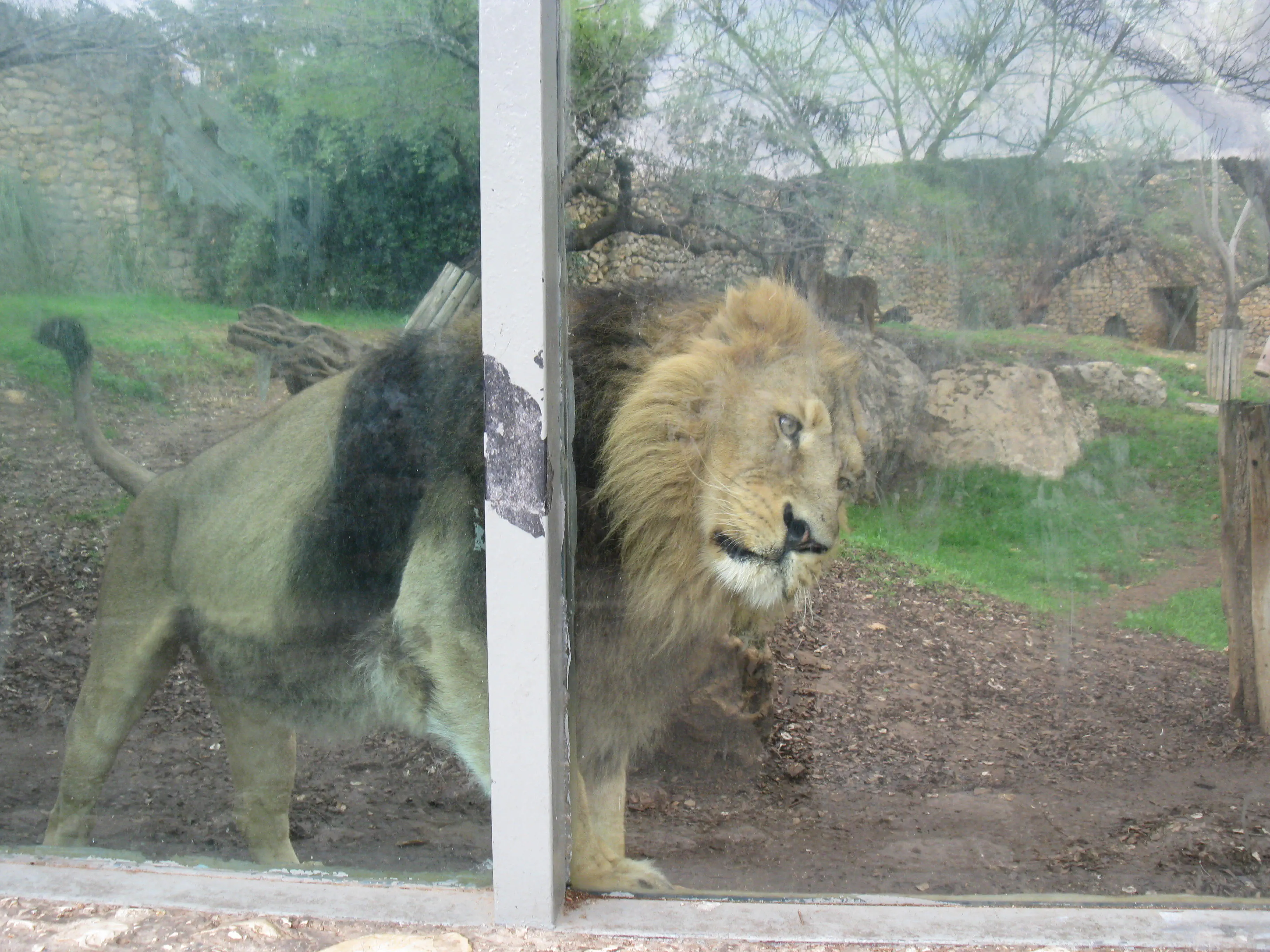מלך החיות מתחכך בחלון כלובו בגן חיות התנכ"י בירושלים