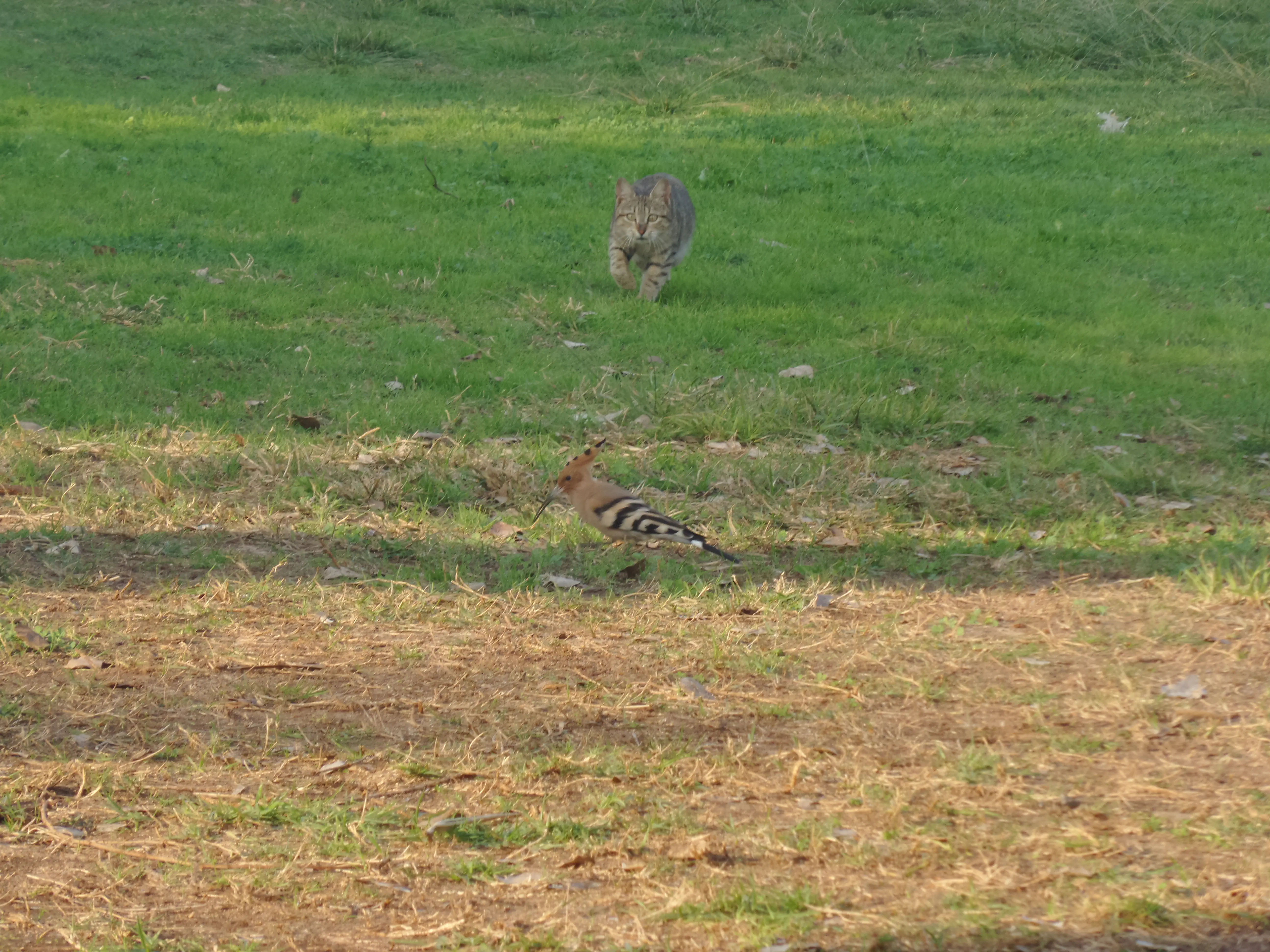 חתול מנסה לטרוף דוכיפת (צילמתי בכפר בתיה שברעננה)