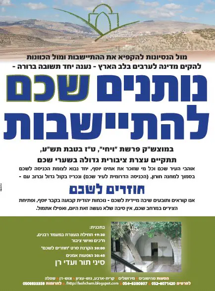 גרעין שכם מקיים במוצאי השבת הקרובה עצרת בשערי שכם בסמוך למחנה חורון תחת הכותרת "חוזרים לשכם".