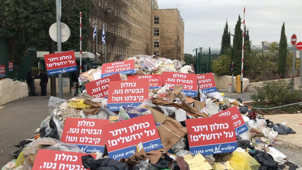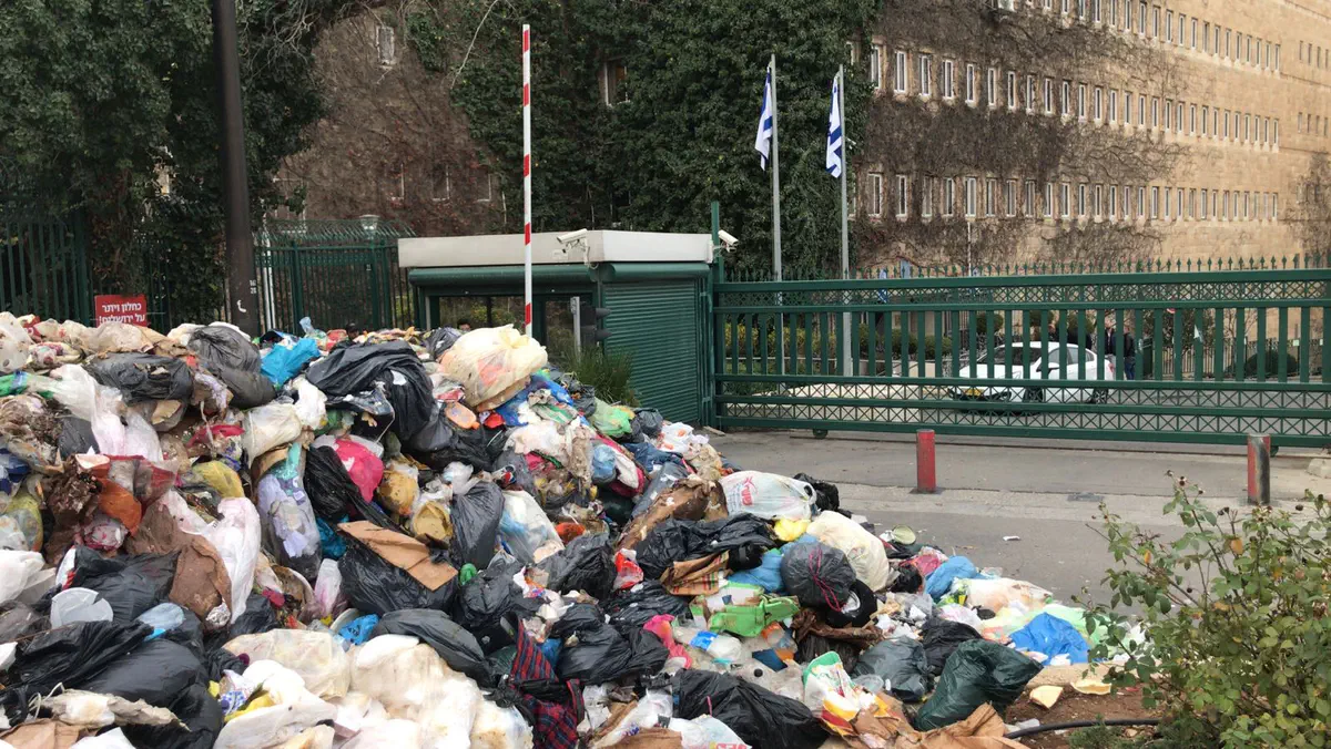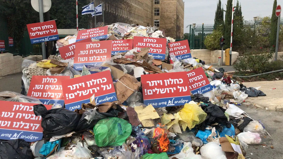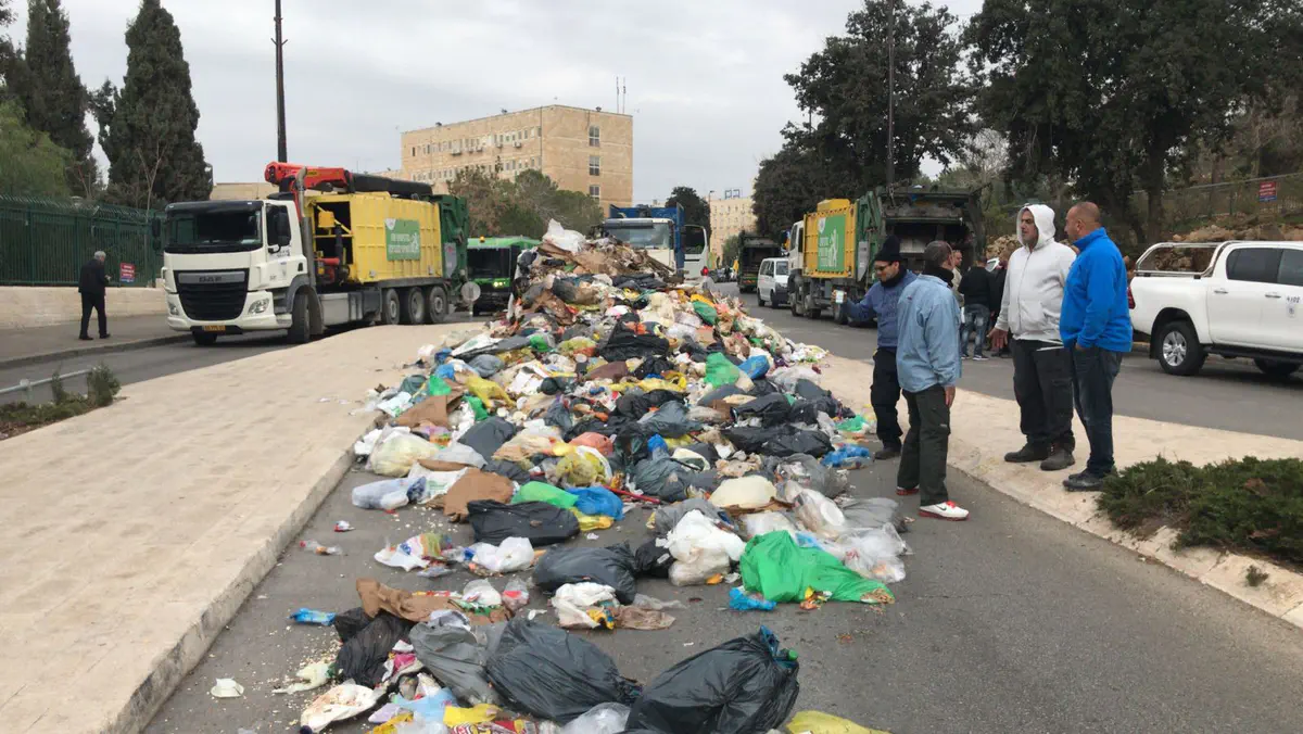 עובדי עיריית ירושלים הפגינו הבוקר (ראשון) בקרית הממשלה בירושלים, סמוך למשרד האוצר, וערמו זבל במספר רחובות באזור.
