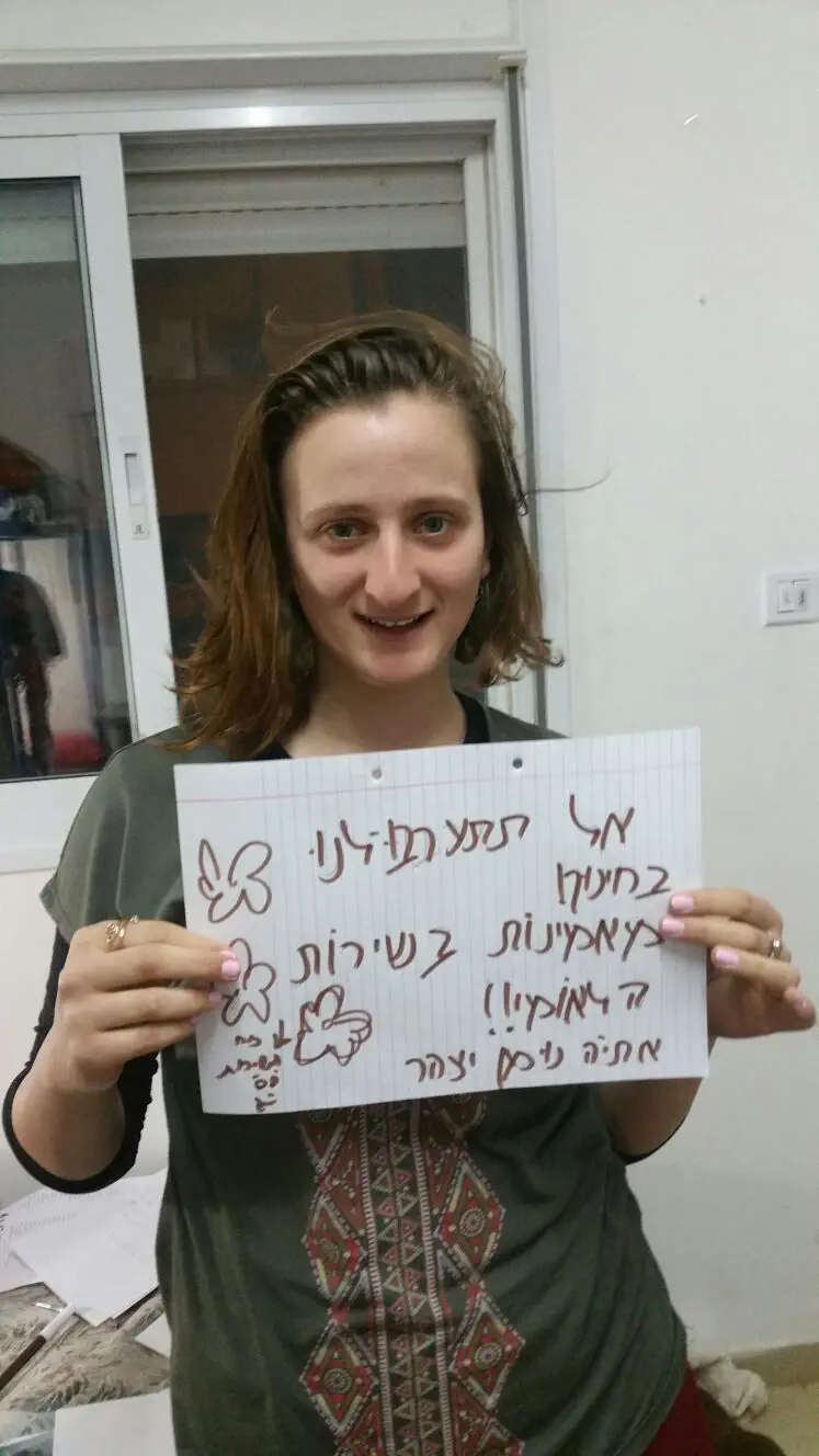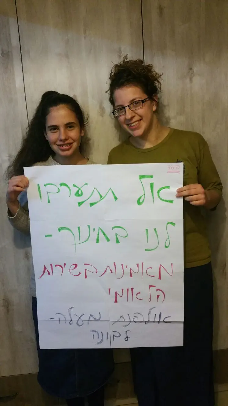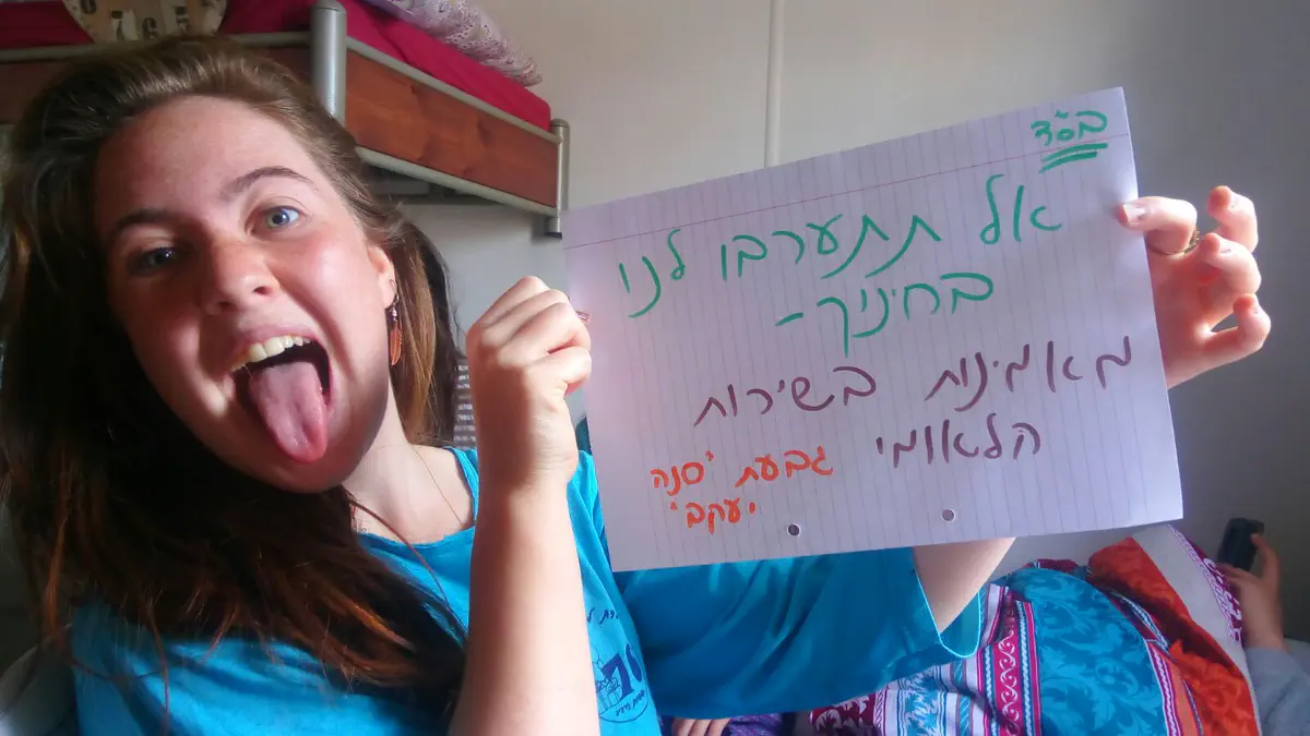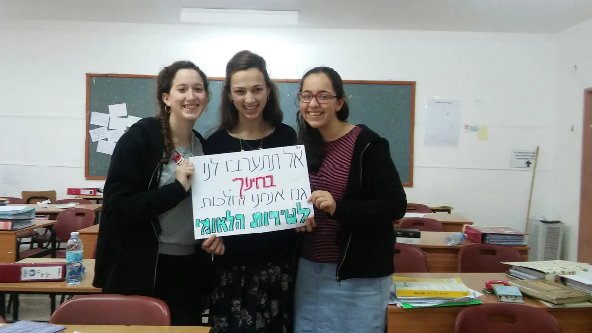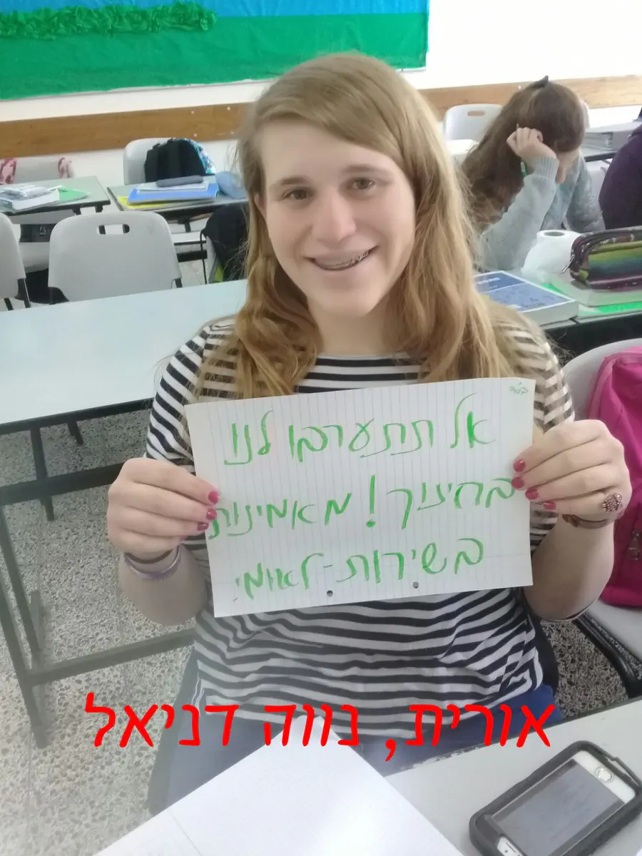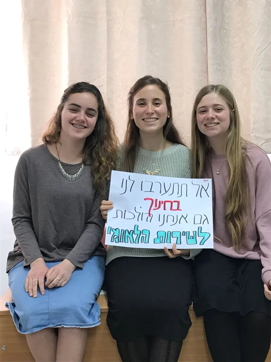 ארגון חותם המוביל את המאבק נגד גיוס בנות דתיות לצה''ל, קרא לתלמידות אולפנה להצטלם עם שלטים שעליהם נכתב "אל תתערבו לנו בחינוך- מאמינות בשירות הלאומי".