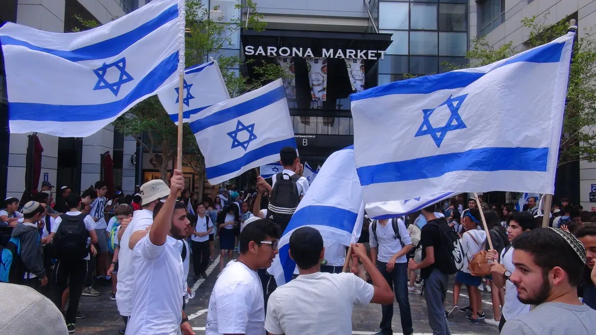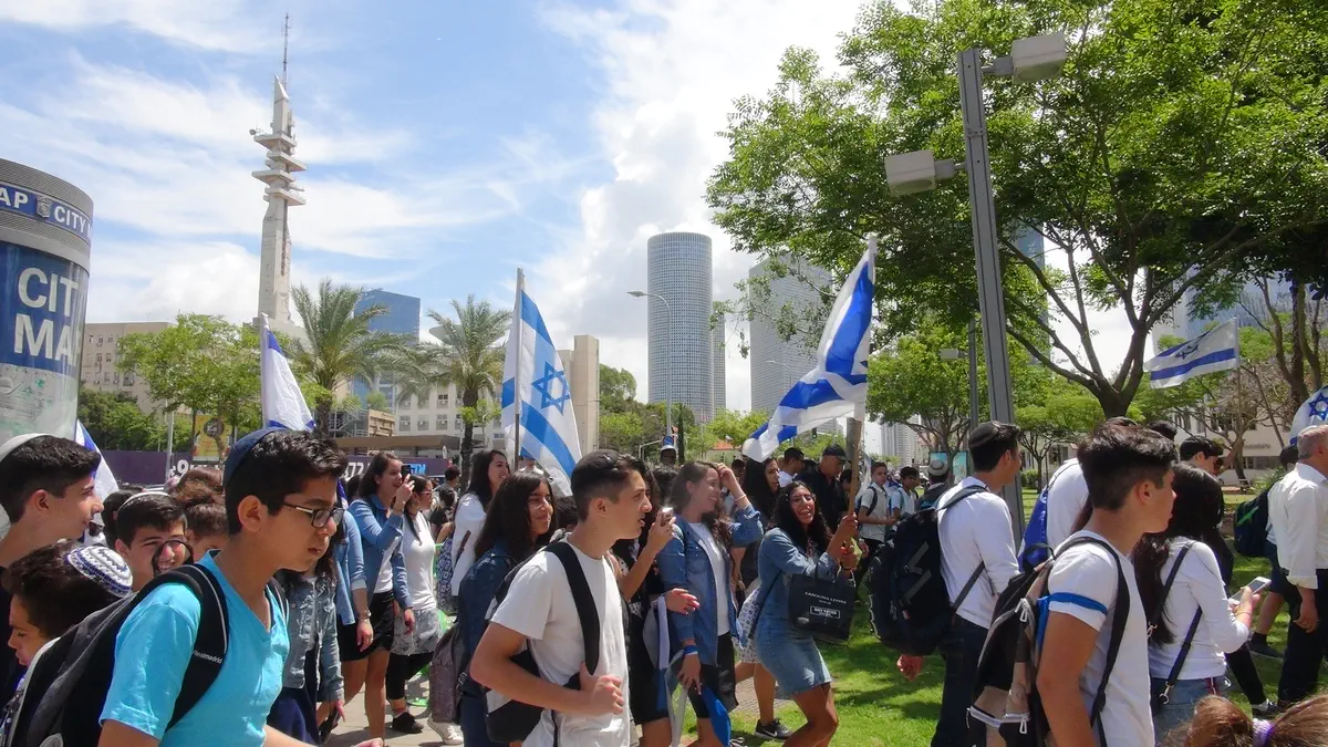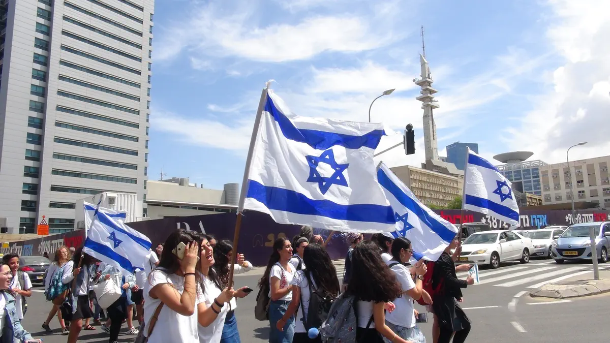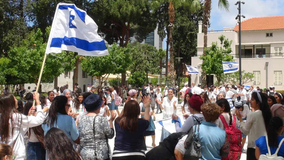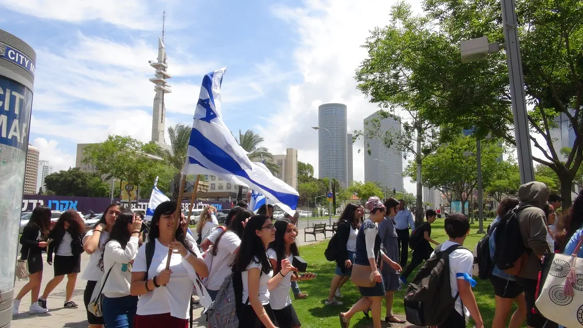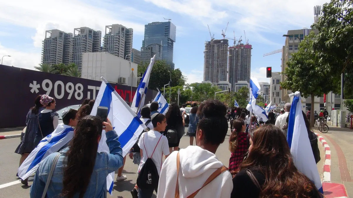 חוגגים "יום ירושלים" גם בלב בתל אביב. תלמידי תיכון עירוני תורני "צייטלין" בתל אביב צעדו הבוקר (ראשון) עם דגלי ישראל ברחובות העיר העברית הראשונה.