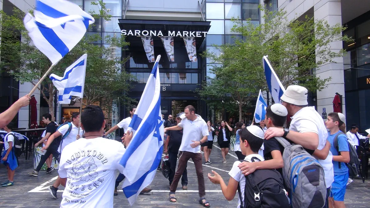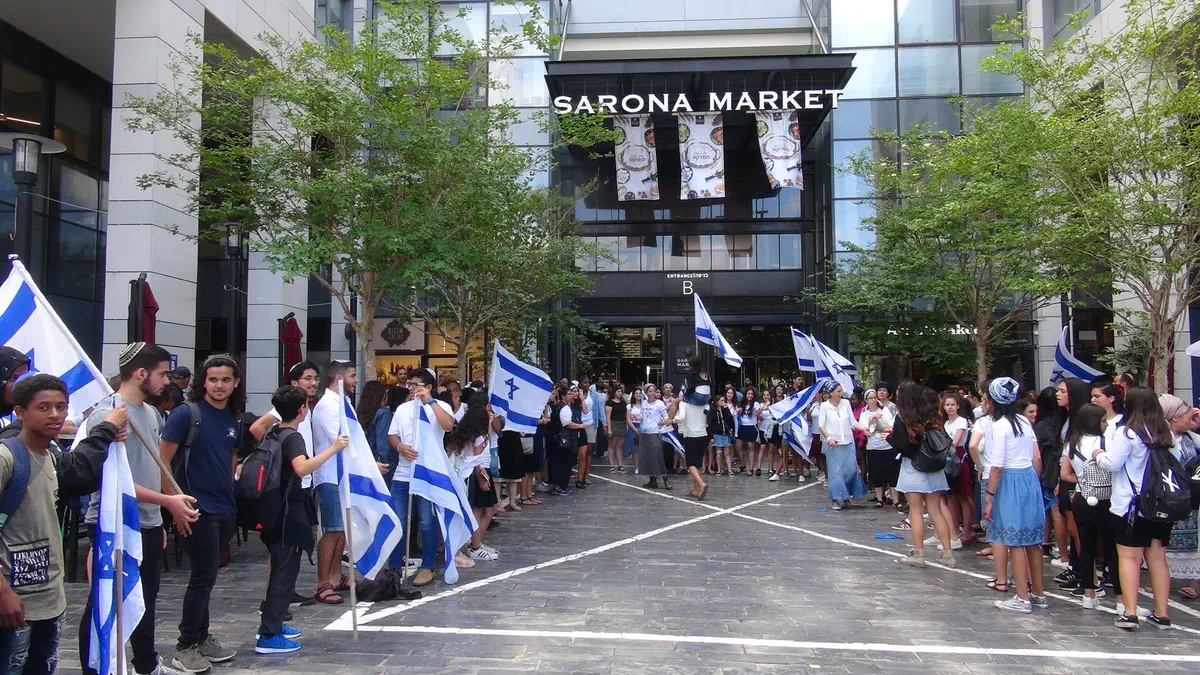 בסיום צעדת הריקודגלים ערכו התלמידים הרקדה חגיגית לציון יום ירושלים במתחם הקניות והבילויים 'שרונה מרקט'.