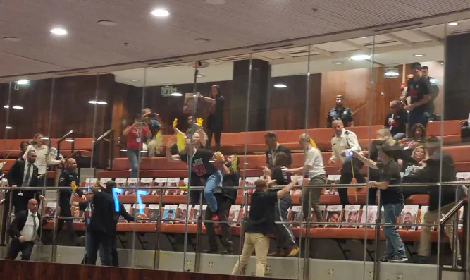 קרובי משפחה של חטופים בעזה הגיעו היום יציע האורחים לצורך קיום מחאה נגד הממשלה בקריאה לשחרור החטופים. הנוכחים מרחו צבע צהוב על הזגוגיות המפרידות בין יציע האורחים למליאת הכנסת. משמר הכנסת מטפל באירוע.