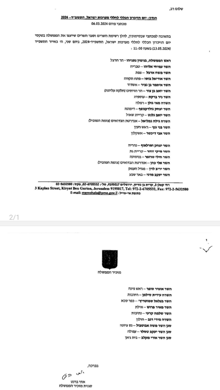 לאחר דרישת משפחות שכולות, משרד הביטחון מפרסם את שיבוץ השרים וחברי הכנסת בבתי העלמין הצבאיים ביום הזיכרון.