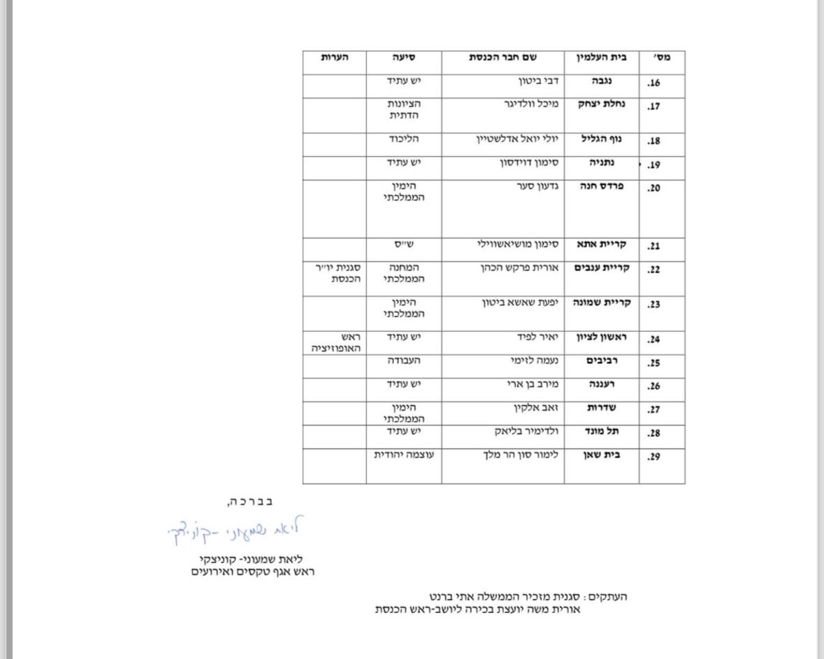 בין היתר: יצחק גולדקנופף - דימונה. מאיר פרוש - אילת. סגן השר טסלר - עפולה. סגן השר מקלב - בית ג׳אן