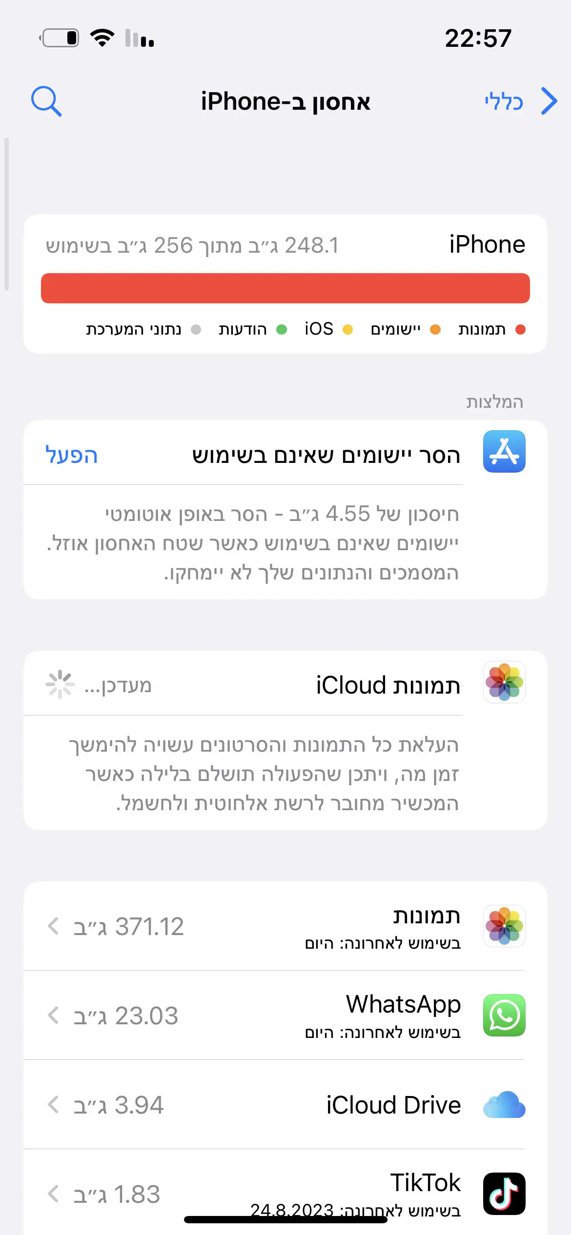 ושידרגתי מ icloud של 50 ג"ב ל 2 ט"ב כי חשבתי ששם הבעיה ושאני צריכה יותר נפח איחסון