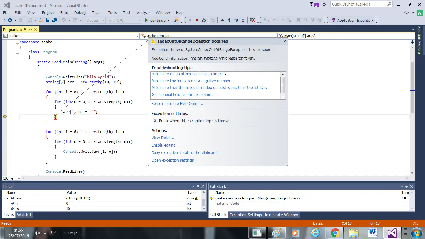 שים לב שהמטריצה מהסוג שהשתמשת בה היא בסך הכל מערך.