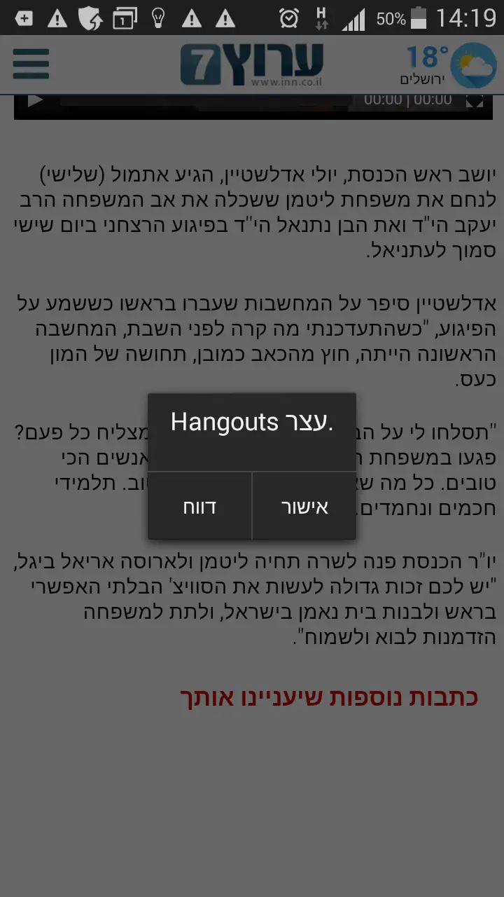 להכנס להגדרות - אפליקציות-hangout-ואז clear cache