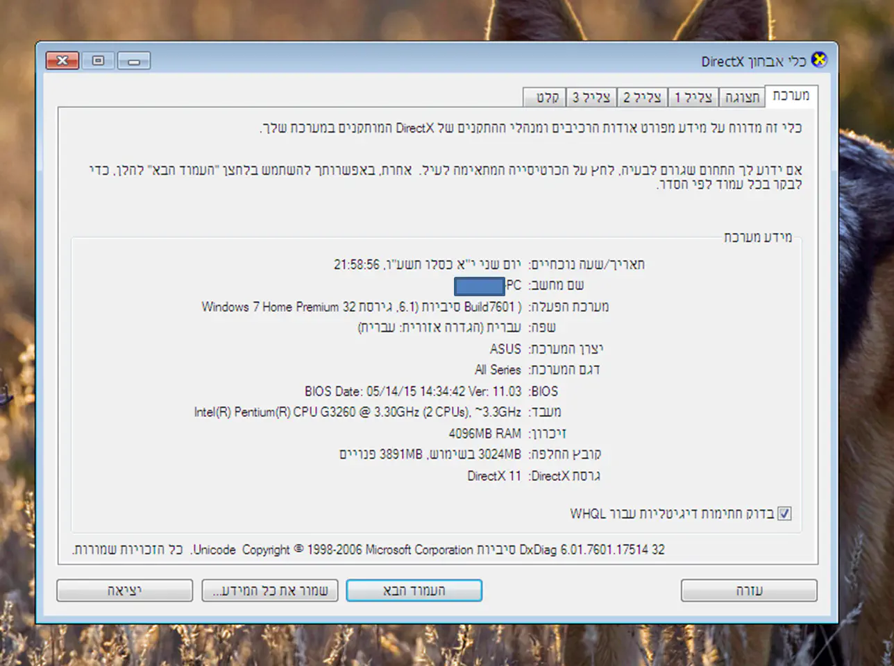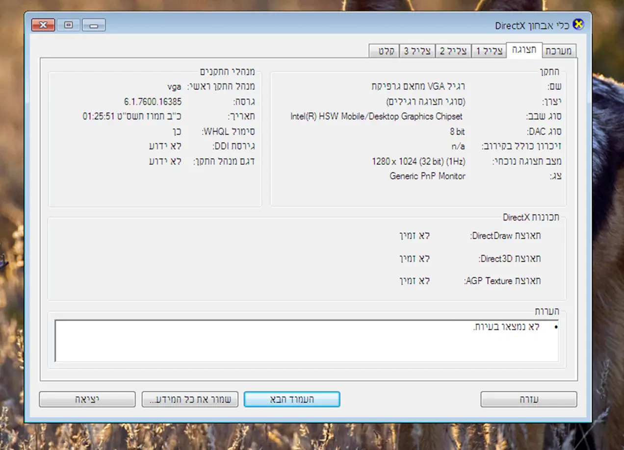 הפעלה- ותכתוב DXDIAG -תגיד מה רשום אצלך בתצוגה