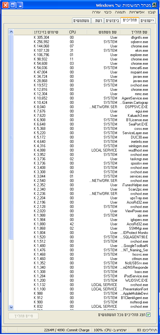 במחשב נורמלי כמות התהליכים אמורה להיות בערך כך + בערך עוד 5-10 תהליכים: