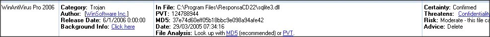 השאלה היא מי נותן את ההתראה,תוכנת אנטי וירוס אחרת שאיתרה את "WinAntiVirus" ? או שלאנטיוירוס שבמחשב שלך כביכול קוראים "WinAntiVirus" והוא דווח לך דיווח סרק על קובץ אחר ?