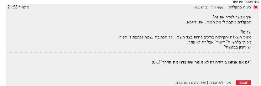 אחרי שאני שולחת את ההודעה הכל מסתדר...