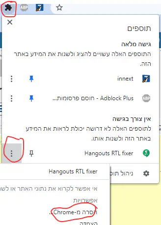 יכול להיות שכשתלחץ על הכפתור "נוסף ל-Chrome" יהיה לך אפשרות להסיר מכרום.