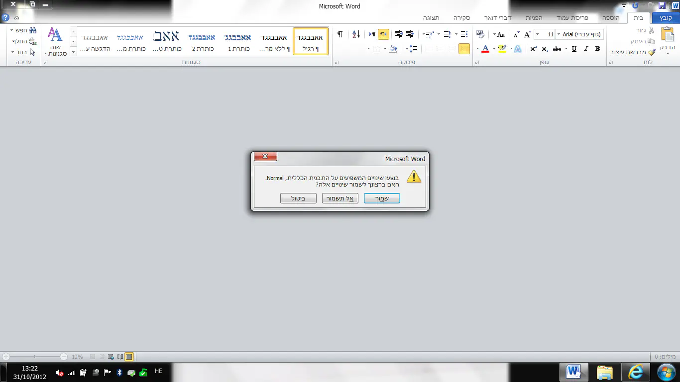 דבר שני- תראה- בכלל לא היה מסומן לי ל: בקש אישור לפני שמירת התבנית Normal