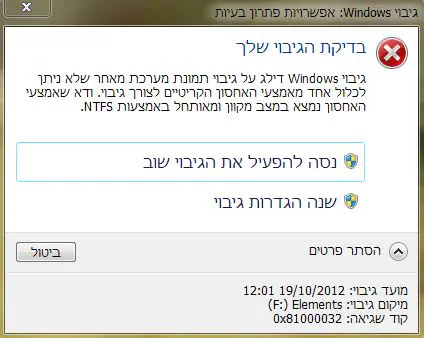 הודעת השגיאה הזאת עדיין מפסיקה את הגיבוי באמצע.