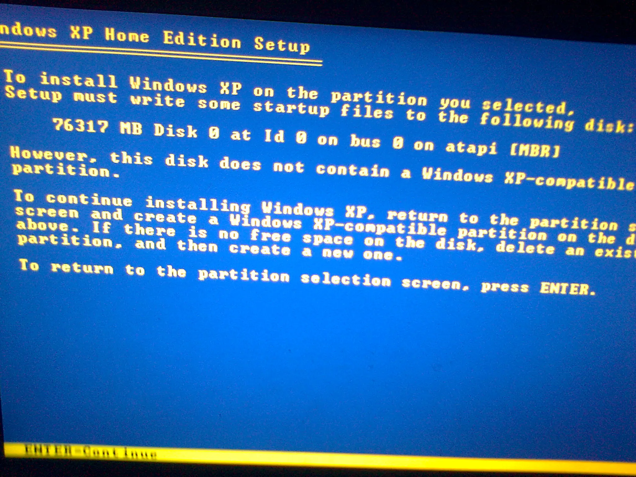 ע"מ לבצע את המשימה כיביתי את המחשב, הכנסתי את הדיסק של window פירמטתי את המחיצה הקטנה ולחצתי enter. למרבה הצער המחשב מסרב להתקין את הwindows במחיצה זאת ומציג את ההודעה שצילמתי פה בצד.