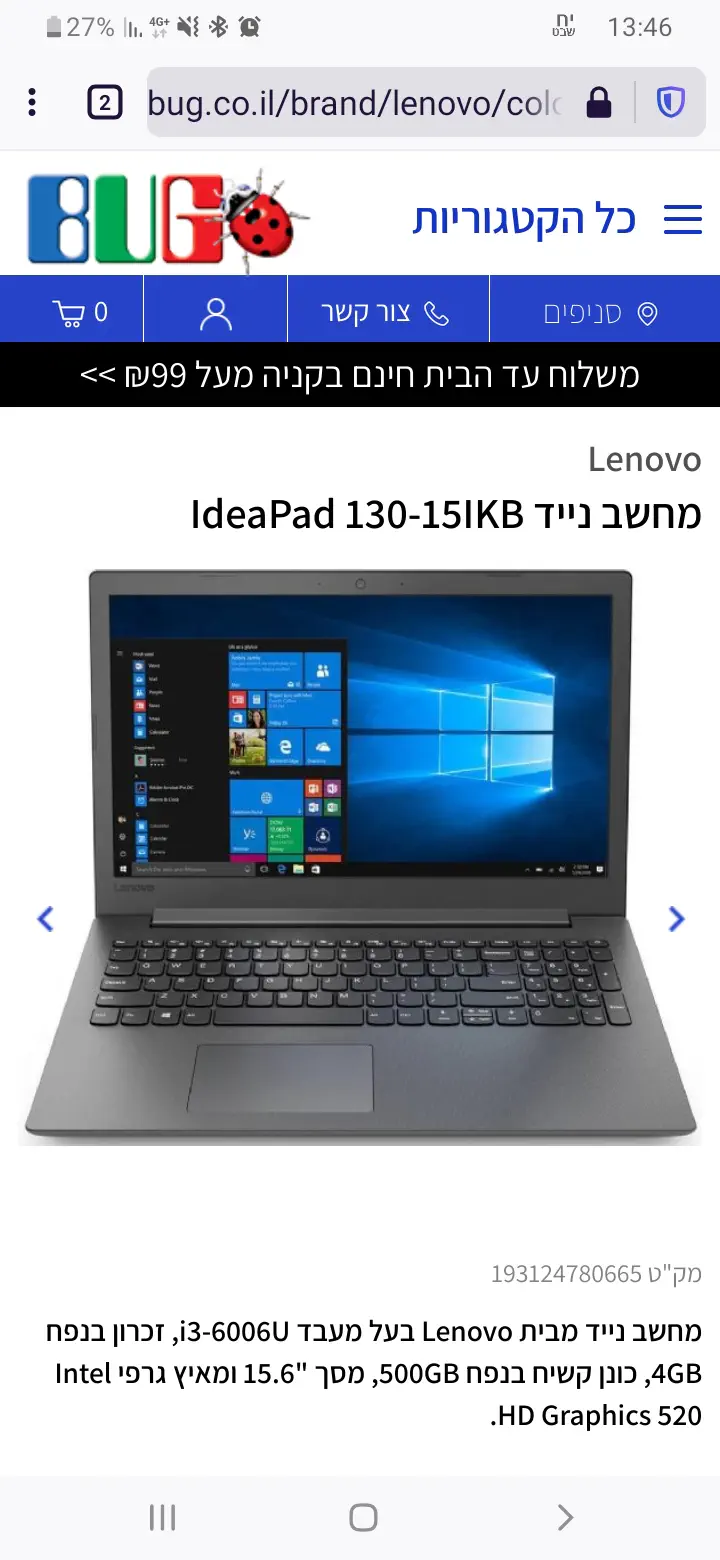 מחשב נייד IdeaPad 130-15IKB Lenovo - באג (האתר הוא סתם התוצאה הראשונה שיצאה לי)