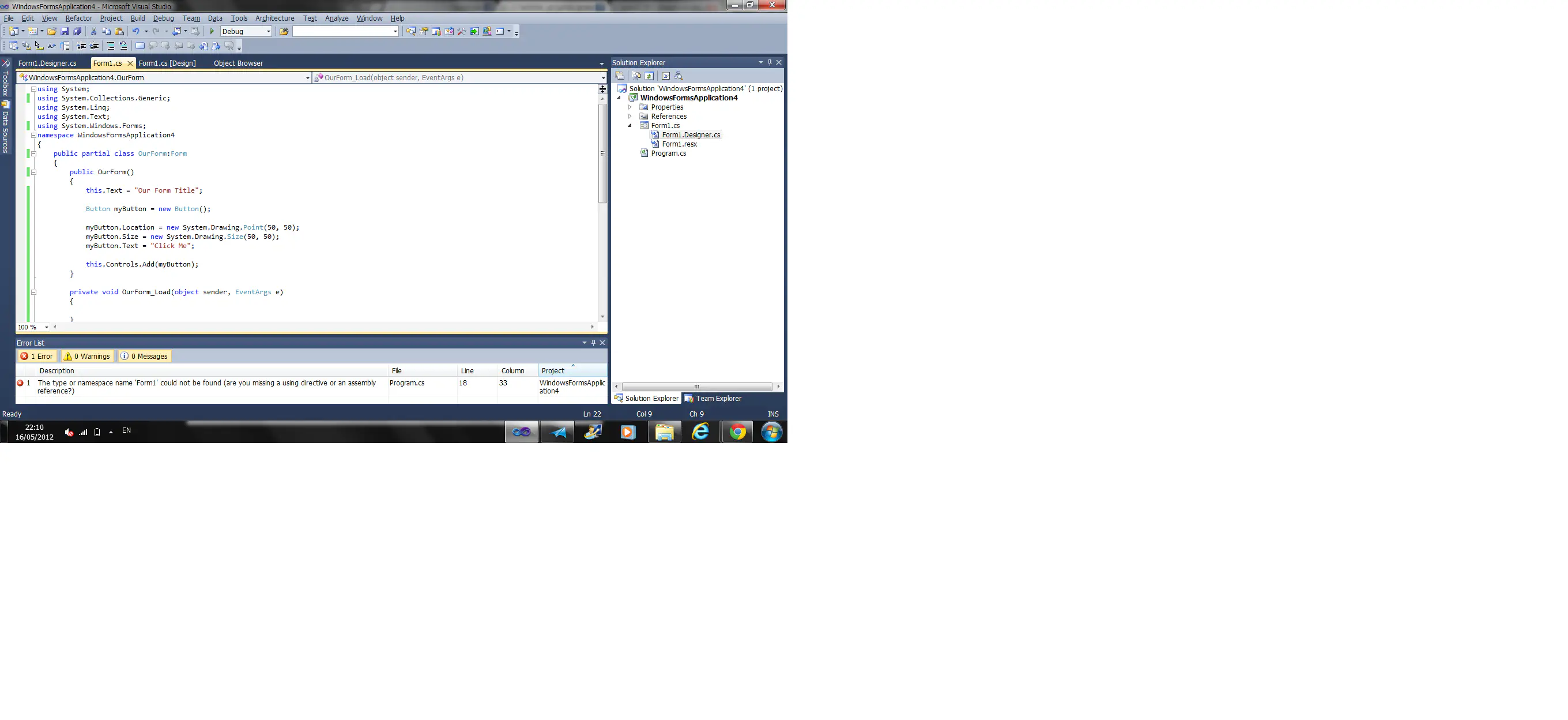 דבר ראשון, כל הכבוד שאתה עושה את כל הקוד ידנית. בvisual studio המון דברים נעשים אוטומטית, ואני בתור מתחיל פשוט גררתי כפתורים ללוח, ולחצתי עליהם פעמיים כדי להגיע לקוד.