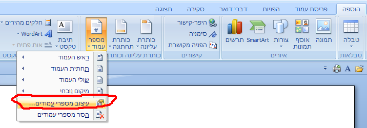 אם אני רוצה להוסיף מספרי עמודים לעבודה בקובץ וורד