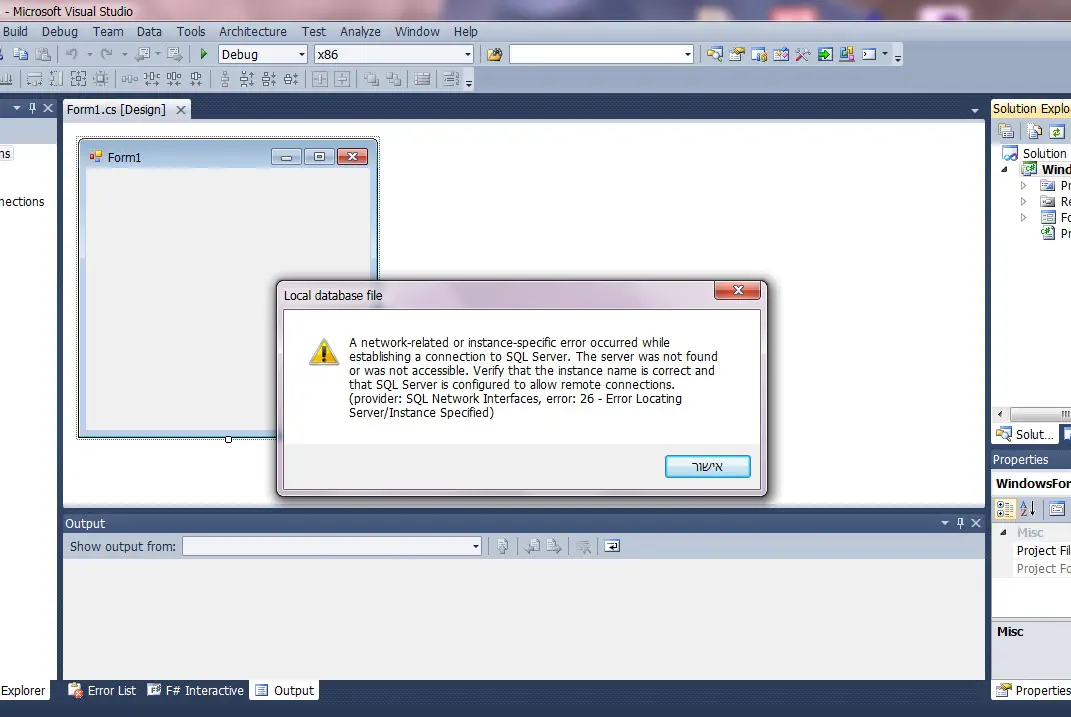 א. משום מה אני לא מצליח להוסיף מסד נתונים לפרויקט שלי. אני מוסיף והוא אומר לי הודעת שגיאה...