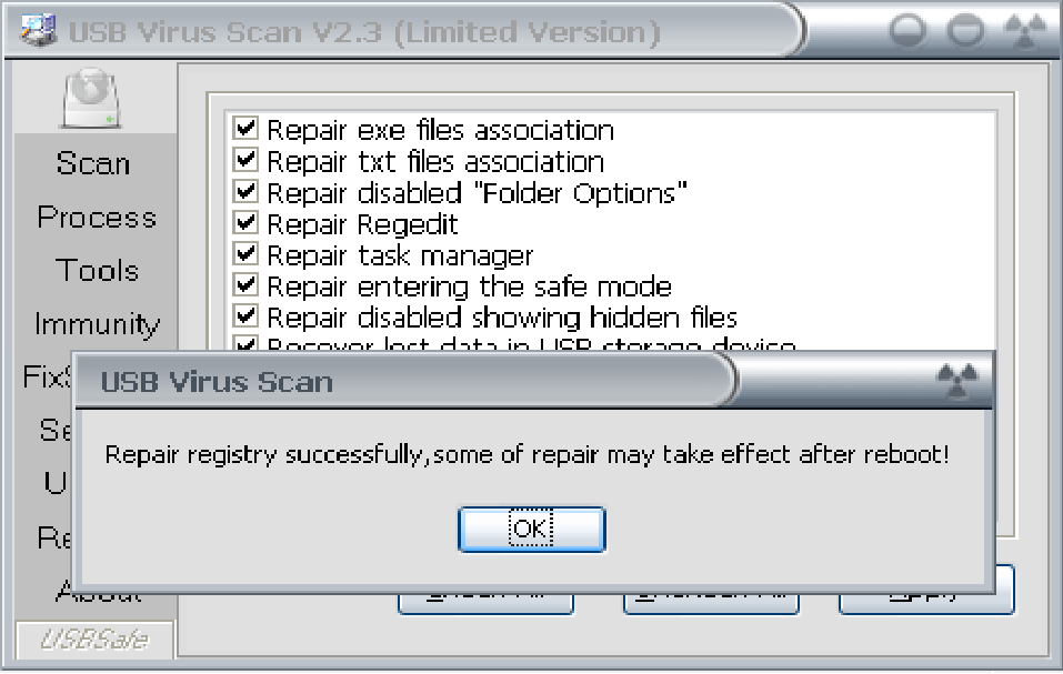 עכשיו, חשוב שתדע שהוירוס הזה נכנס דרך כונני USB (דיסק און קיי, אמפי3 וכאלה). תכניס את כונני הUSB שלך אחד אחד למחשב ותסרוק אותם עם התוכנה הזאת היא תמחק לך את הוירוס מהכונן.
