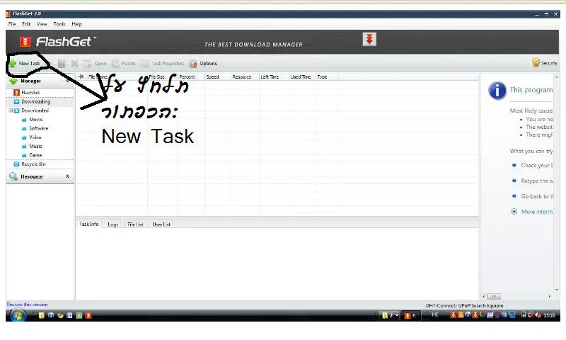 תלחץ על הכפתור: "New Task" (ניראלי)E.L.Tאחרונה