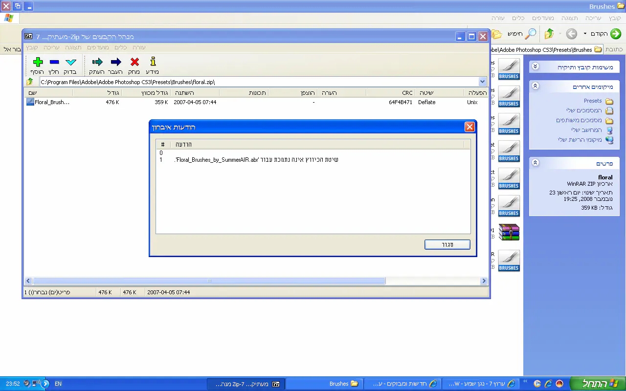 Program Files\Adobe\Adobe Photoshop CS3\Presets\Brushes\circle-brushes.zip: סוף ארכיון לא צפויאין לי התוכנה שהמלצת..