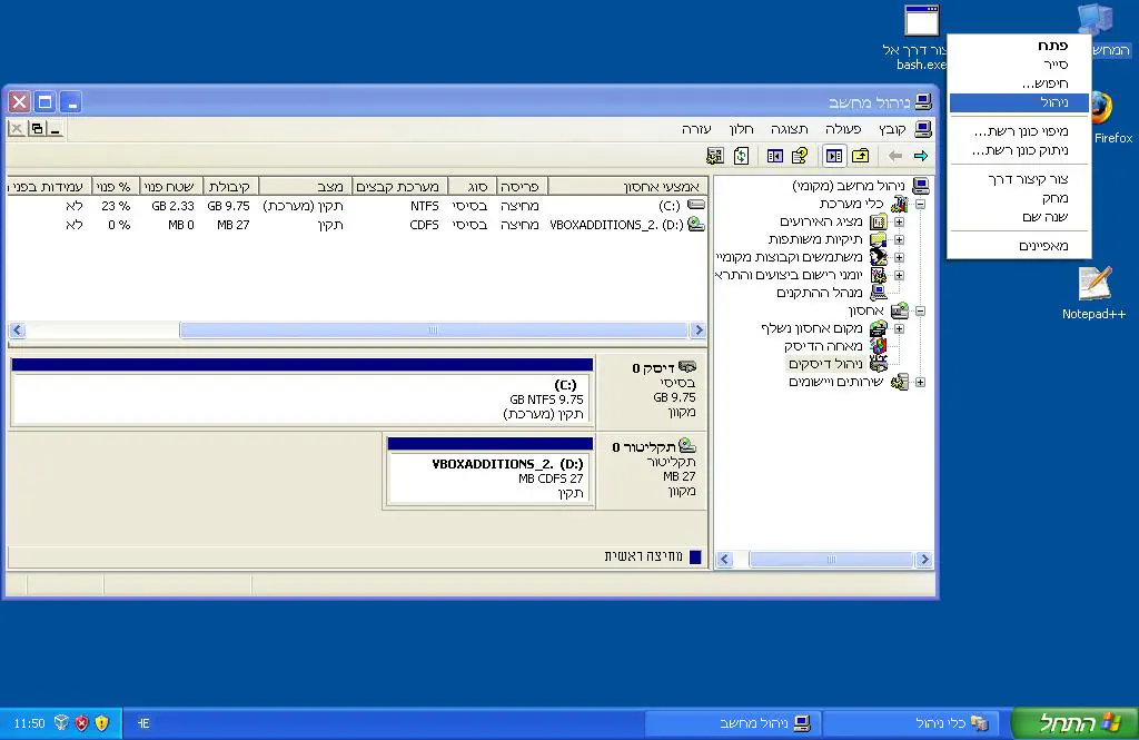 אתה יכול לעשות מאפיינים על הדיסק הקשיח ולהגיד לי כמה תפוס וכמה פנוי?
