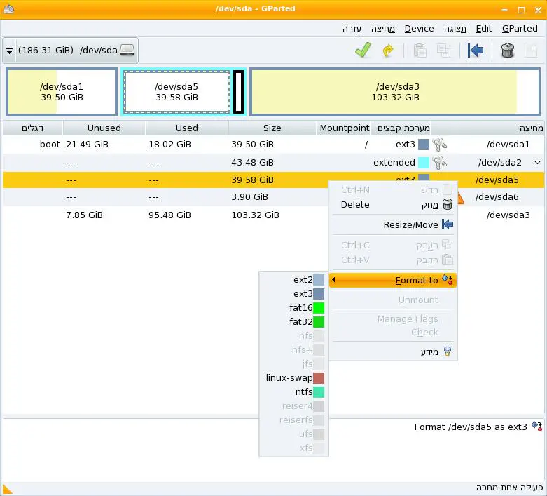 אתה יכול להשתמש למשל בGParted