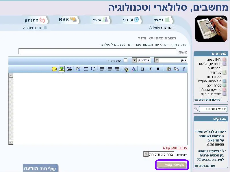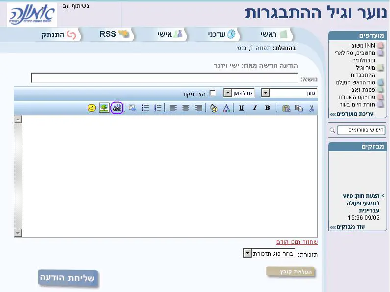 1) פותחים "כתיבת הודעה" / "הוספת תגובה בעמוד חדש".