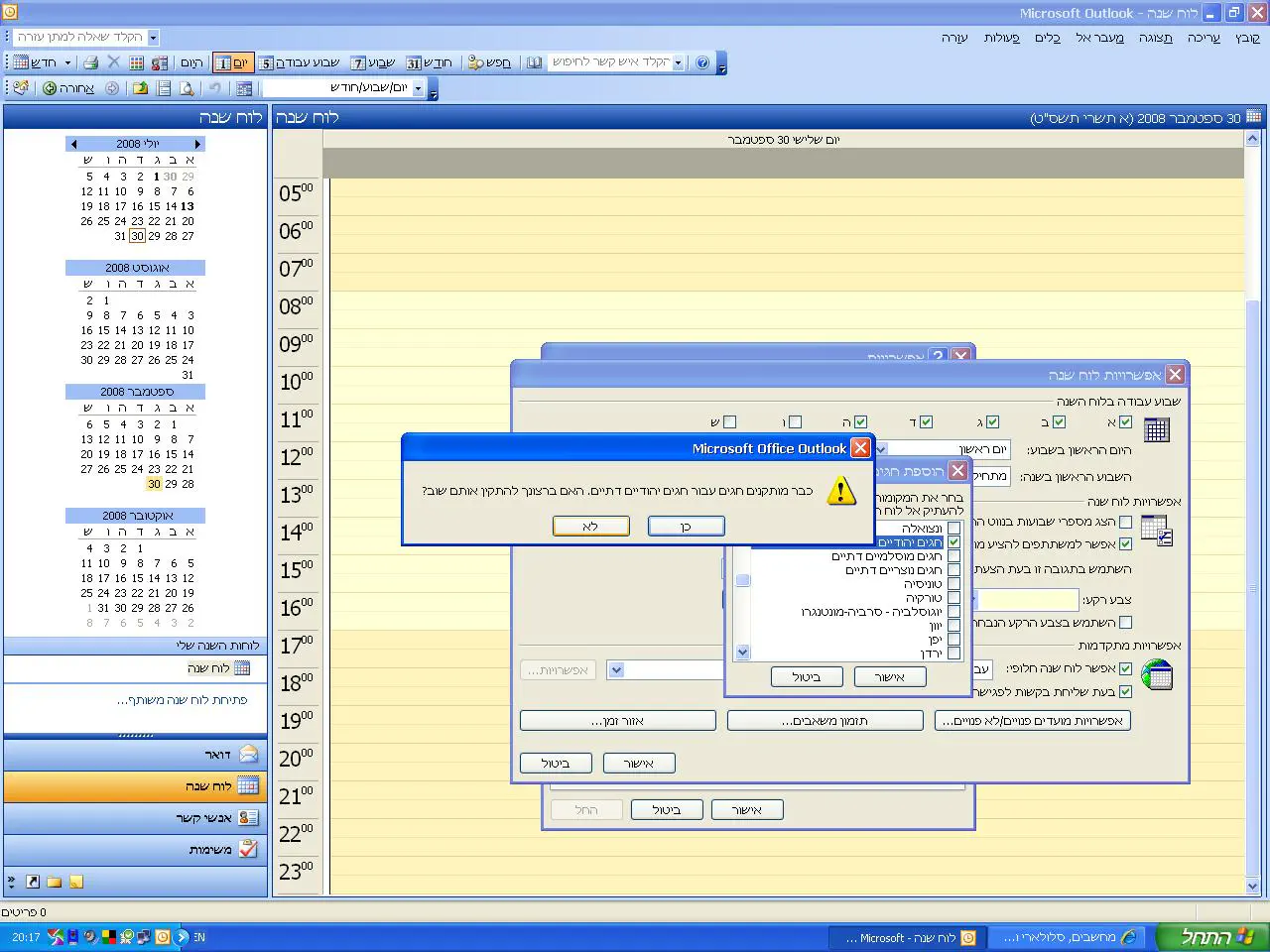 לפני מס' חודשים הוספתי את ספירת העומר (כולל הלוח העברי) לאאוטלוק,