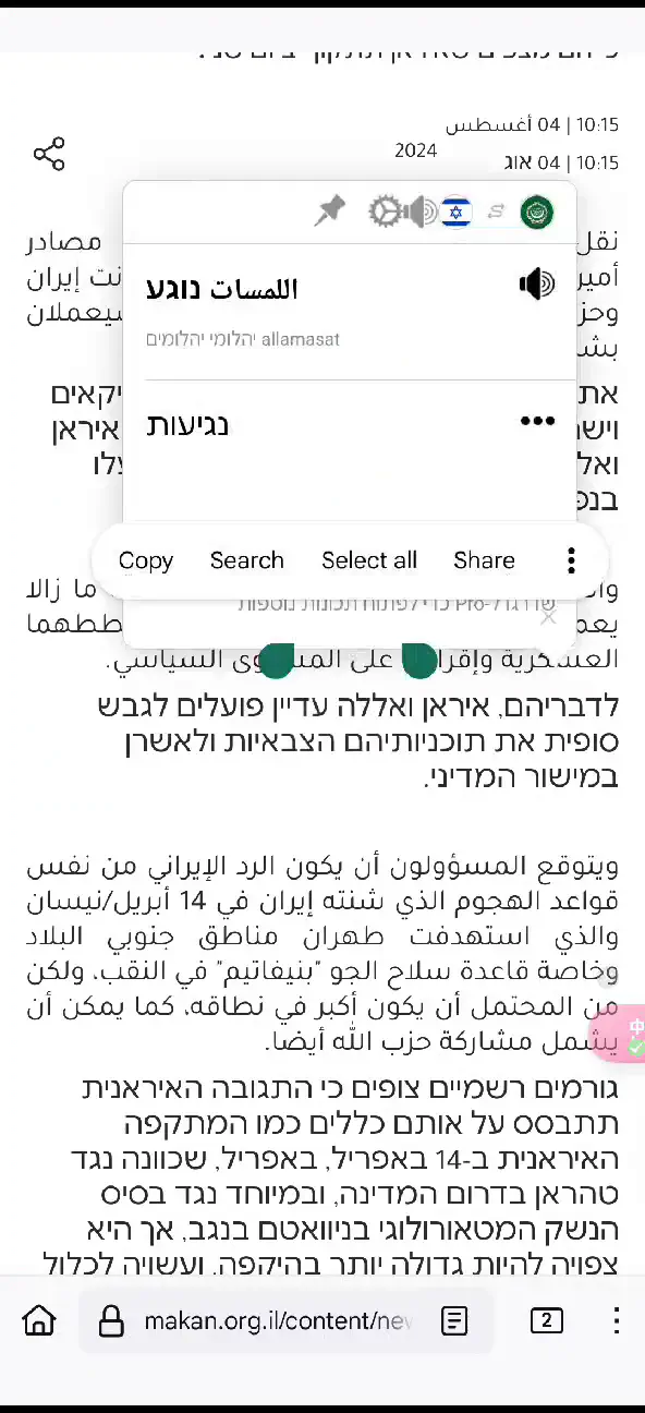סימון ולחיצה ימנית, תרגום הטקסט שנבחר לעבריתמתנחל בראבק