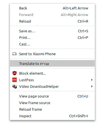 לחיצה ימנית עם העכבר, ויש אופציית תרגום:
