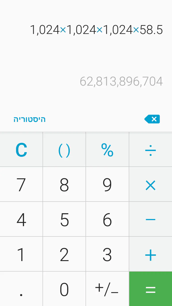 ש58.5 GB של מחשב, אינם שווים ל64 GB במשעמעות הקלאסית שג'יגה זה מיליארד