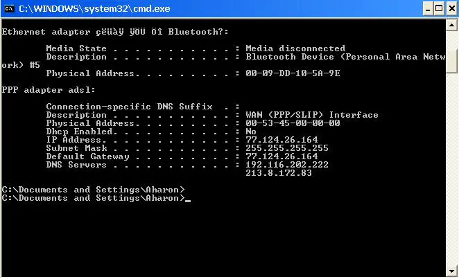Documents and Settings\Aharon>nslookup www.ynet.co.il 192.116.202.222לומשנה שכתבתי ת'שם של התוכנה לא נכון..
