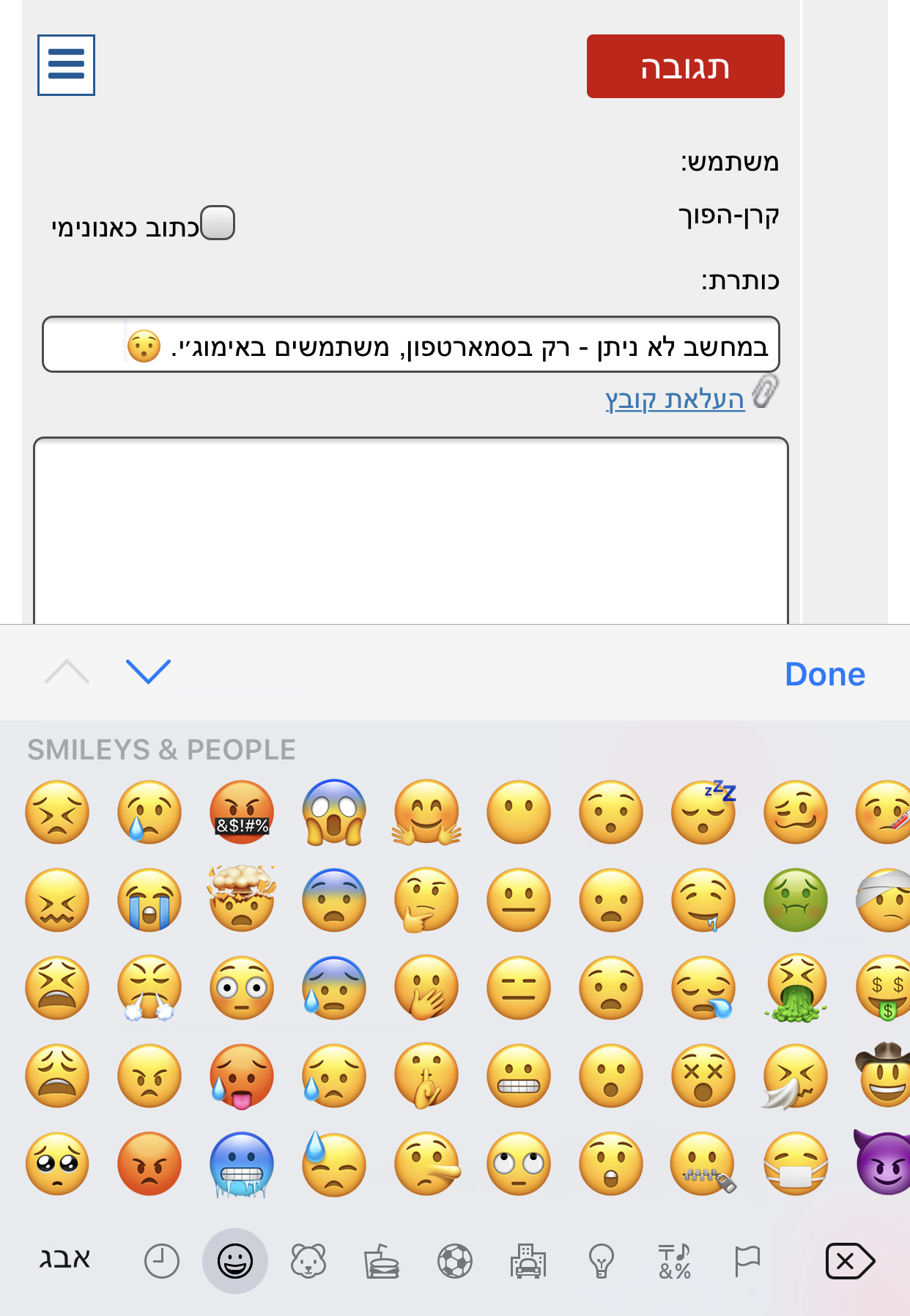 🤤😪😵🤐כשאני לוחצת על סמיילי, הוא אוטומטית עובר לגוף ההודעה, למרות שהעכבר שלי נמצא בכותרת. את יכולה בבקשה להעלות צילום מסך איך עושים גם בכותרת?