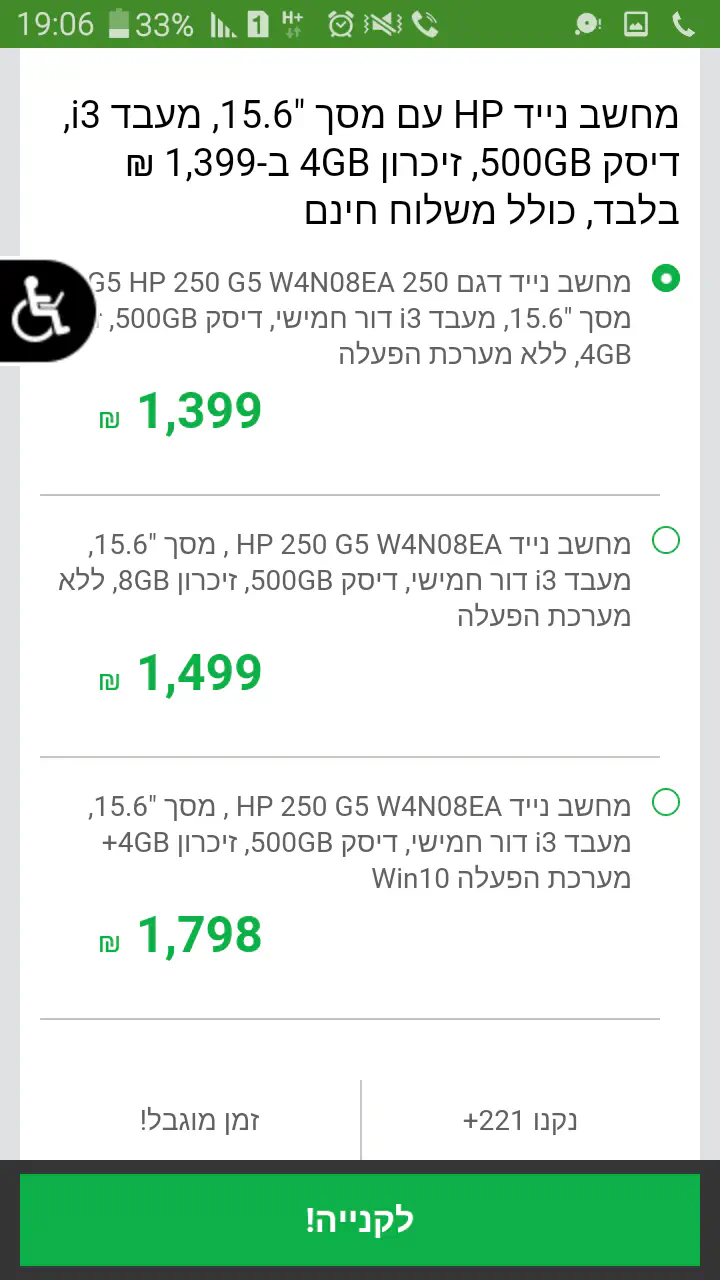שימי לב, אני מתכוון ספציפית לקישור הזה ולא לאחד דומה עם אחריות שונה או זיכרון שונה. אם יש התלבטות, בשביל זה יש מק"ט: 56916