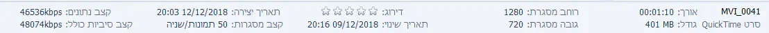 צריך לסגור כMP4 H264 או 265 ב 25 FPS