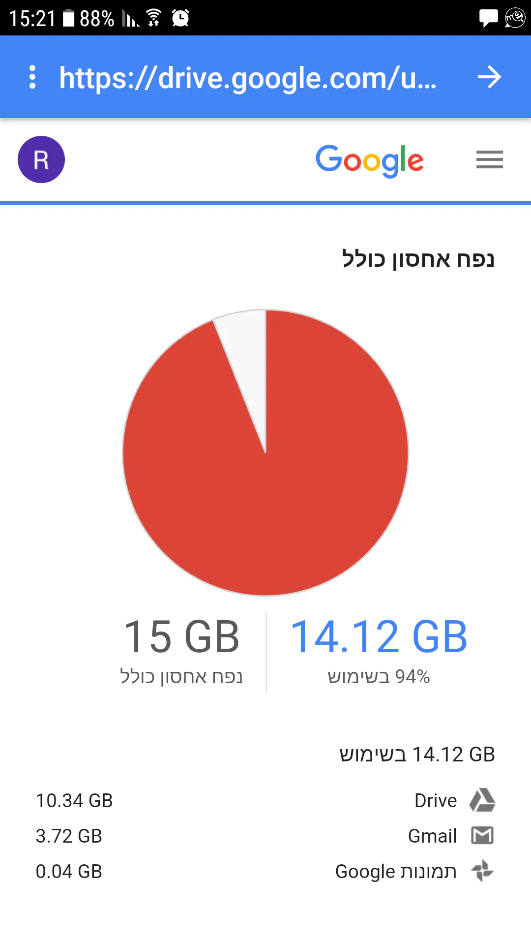 כתוב לי שנגמרה לי מכסת האחסון של 15 ג"ב