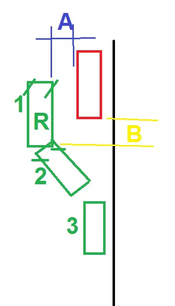 אני עם הרכב הירוק בשום אופן לא עובר את האובייקט שעליו אני עושה חניה B צהוב.
