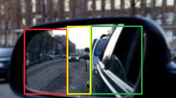 אם הרכב שאתה רואה במראה במרכז (השטח הצהוב) צריך לשים לב לתנועת הרכב, אם הוא סטטי או נע לכיוון השטח הירוק, אנחנו מהירים יותר ממנו- זה בטוח לעבור.