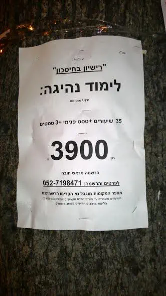 אסור להתחיל ללמד נהיגה מעשי לפני שהרישוי חותם מאחור.