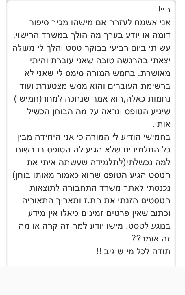 היה לי טסט לא נראה לי שעברתיanonimii