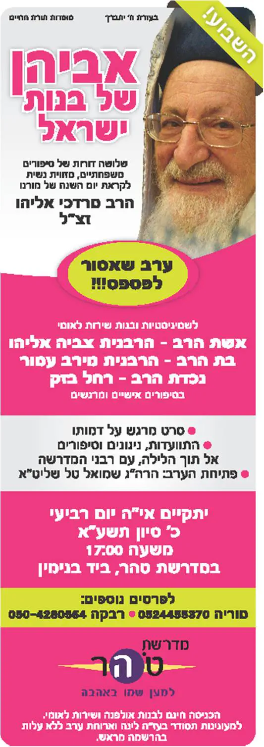 וגם את אחות, אם יצאת בערב שבת עם שמלה 'ווא ווא', שמנכרת עיניים,