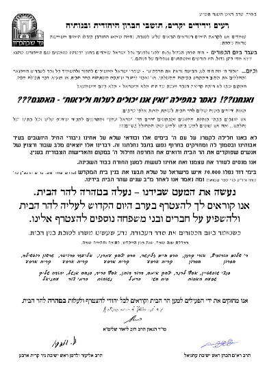 אנא חתמו על המכתב והפיצו בכל דרך אפשרית: