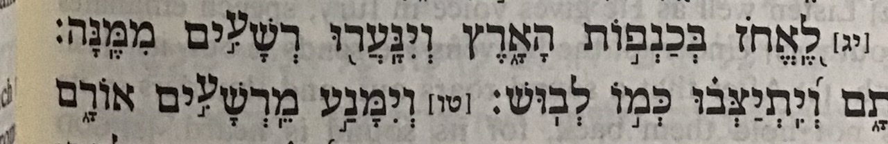 לפי המסורה האות עין במילה רשעים גבוהה משאר האותיות ויש פה המחשה יפהפיה לרעיון שהפסוק רוצה להביע.